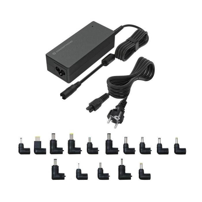 El Conceptronic OZUL08B15 es un cargador universal automático de 90W de potencia, diseñado para ofrecer una solución versátil y fiable para portátiles de diferentes marcas. Gracias a sus 15 conectores intercambiables (tips) y su compatibilidad con salidas de 15V a 20V, es ideal tanto para usuarios domésticos como profesionales que necesiten una alternativa robusta y eficiente para cargar múltiples dispositivos. ### Carga automática y potencia de hasta 90WEste cargador universal ajusta automáticamente el voltaje de salida según el dispositivo conectado, garantizando una carga segura y estable sin configuraciones manuales.