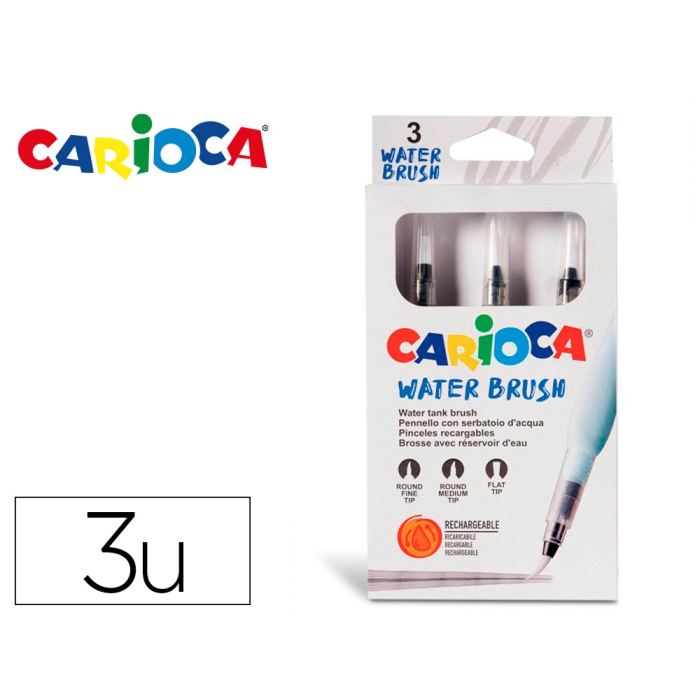 Carioca Pincel Recargable Agua Redondo Puntas Surtidas Caja de 3 Unidades