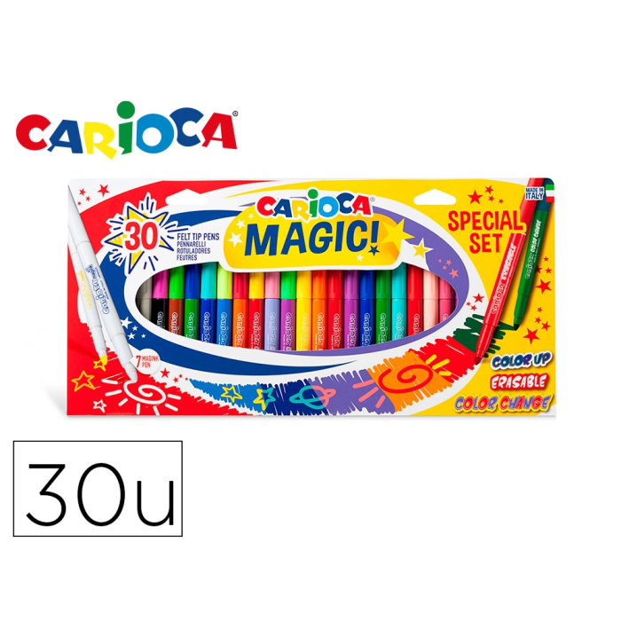 Carioca Rotulador Magic Markers Set Caja 30 Unidades Colores Surtidos con Tinta Mágica Cambia Color