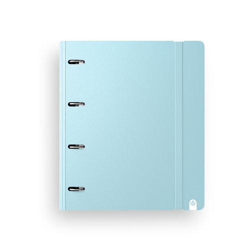 Carpeta en tamaño A4 con 4 anillas de 35 mm, cubiertas de polipropileno foam de 2 mm de grosor, sobre con solapa y cierre de velcro, cierre de goma, juego de 4 separadores de polipropileno extra fuerte y recambio de 100 hojas de 90 gramos con banda de color.