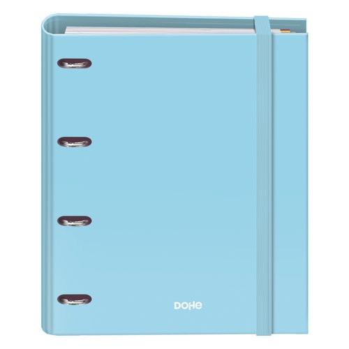 Carpeta con cubierta en cartón forrado, con papel impreso y plastificado mate. Guardas impresas. Mecanismos de 4 anillas mixtas niqueladas de 35 mm con compresor de plástico y cierre de goma elástica ancha plana de color. Interior de 100 hojas con banda de color, en papel offset de 90 gramos con 4 taladros y cuadrícula de 5 mm. Incluye: 4 separadores polipropileno de colores y calidad extra y un dosier/sobre en polipropileno transparente con multitaladro y cierre de velcro. Certificado FSC Mixto. Medidas: 320 x 280 x 40 mm.