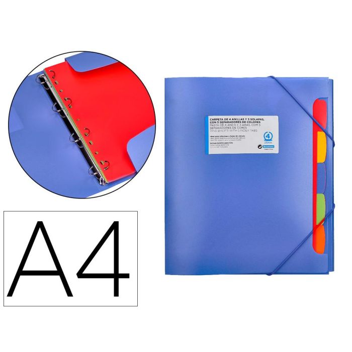 Carpeta Beautone 4 Anillas 25 mm Con 5 Separadores 3 Solapas Cierre Gomas Polipropileno Din A4 Color Azul