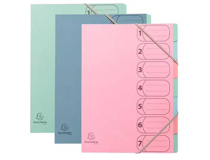 Exacompta Carpeta Clasificadora Autentik 7 Departamentos A4+ Cartón Reciclado Colores Surtidos Certificado Angel Azul