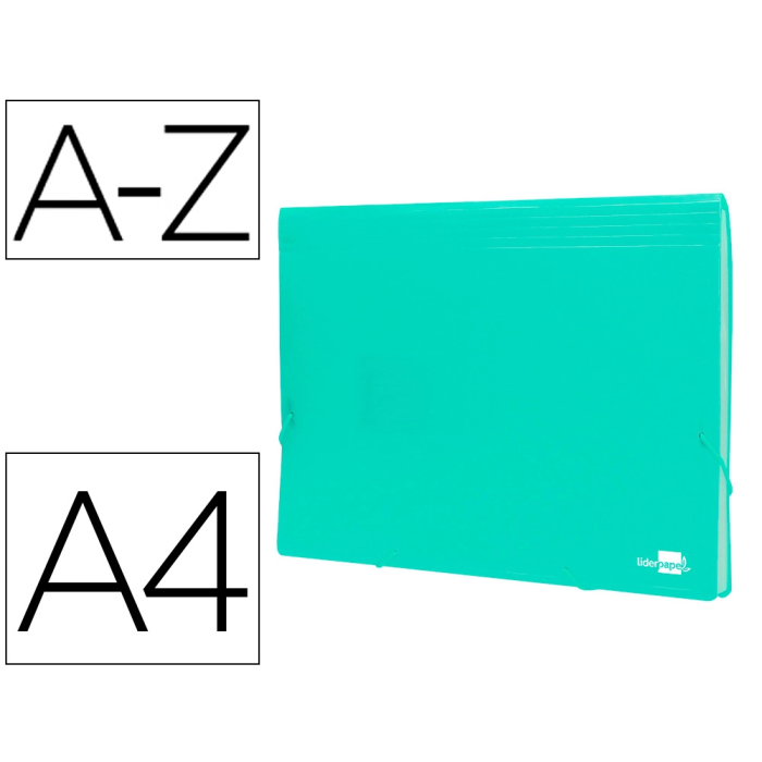 Liderpapel Carpeta Clasificador Fuelle Polipropileno DIN A4 Verde Opaco 13 Departamentos Cierre Gomas 2 Huecos Tarjetas Etiquetas Meses A-Z