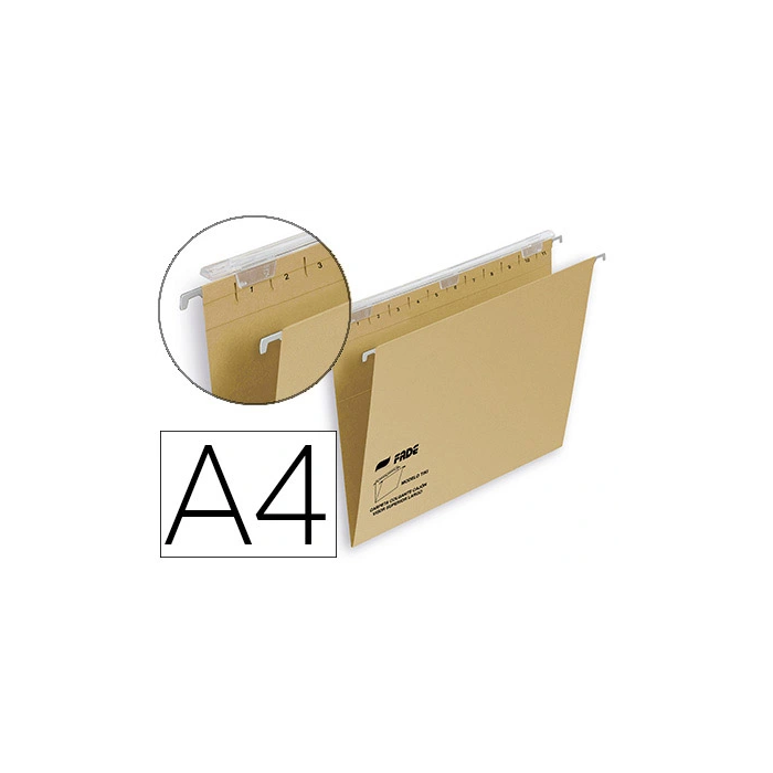Fade Carpeta Colgante Tiki DIN A4, Kraft Eco 230 g/m², Visor Superior Efecto Lupa, Lomo V, Certificado Blue Angel