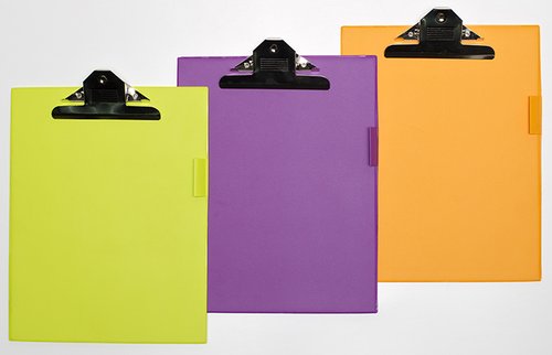 Carpeta portanotas con pinza jumbo y canguro para una mayor sujeción del papel. Su superficie, en colores alegres y divertidos, facilita la escritura.