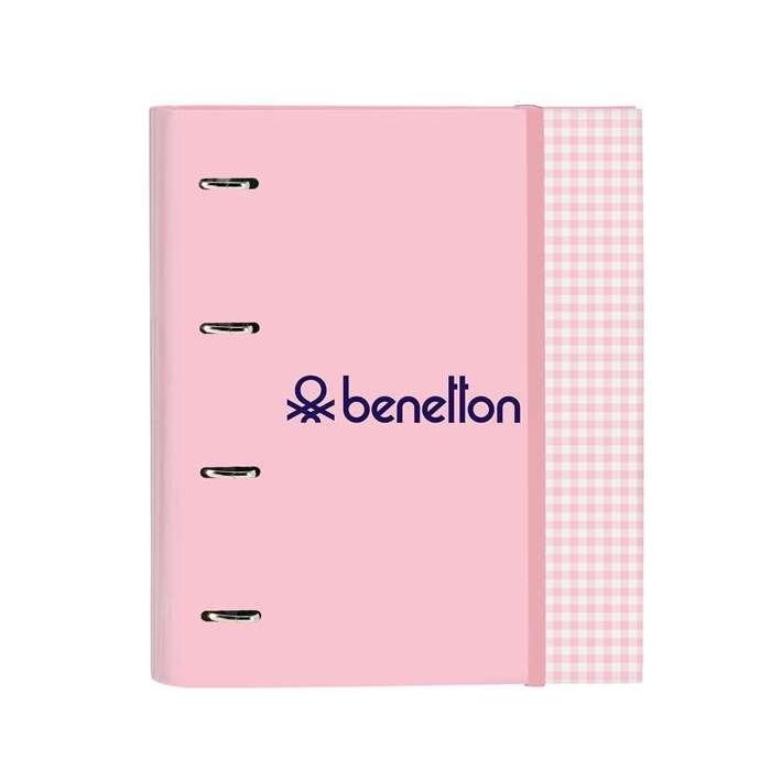 Benetton Carpeta 4 Anillas "Vichy" Recambiable 27x32x3,5cm Poliéster Rosa Claro