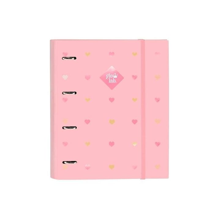 Safta Carpeta Anillas 35 mm A4 Glowlab Hearts con Cierre Goma y Tapas Duras, Recambio 100 Hojas