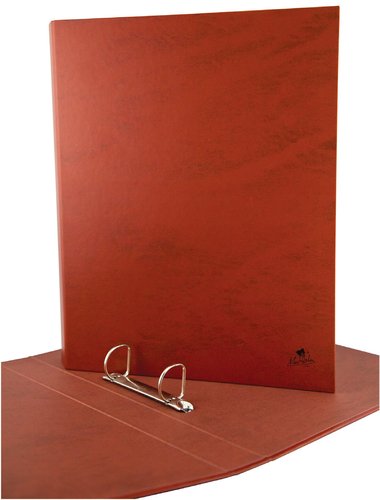 Fabricadas en cartón forrado en papel impreso símil cuero, plastificado en polipropileno mate, con anillas mixtas cromadas. Medidas:340 x 260 x 40 mm.