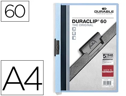 Durable Carpeta Duraclip Dossier con Pinza Lateral, Azul, Capacidad 60 Hojas, Formato DIN A4