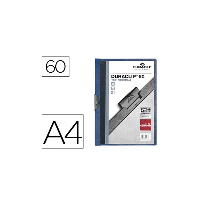 Ver todas las marcasDurable Carpeta Duraclip Dossier Pinza Lateral Azul Oscuro Capacidad 60 Hojas Din A4 Polipropileno