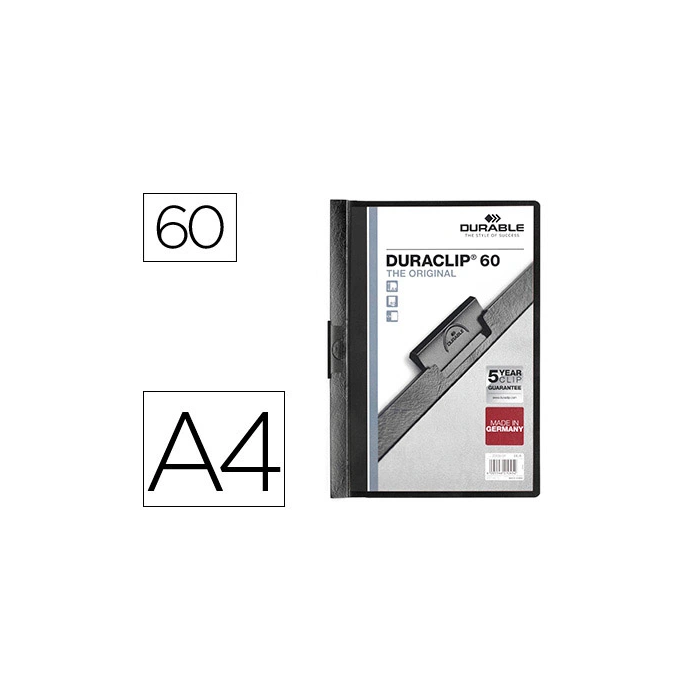 Ver todas las marcasDurable Carpeta Duraclip Dossier Pinza Lateral Negro Capacidad 60 Hojas DIN A4 Polipropileno