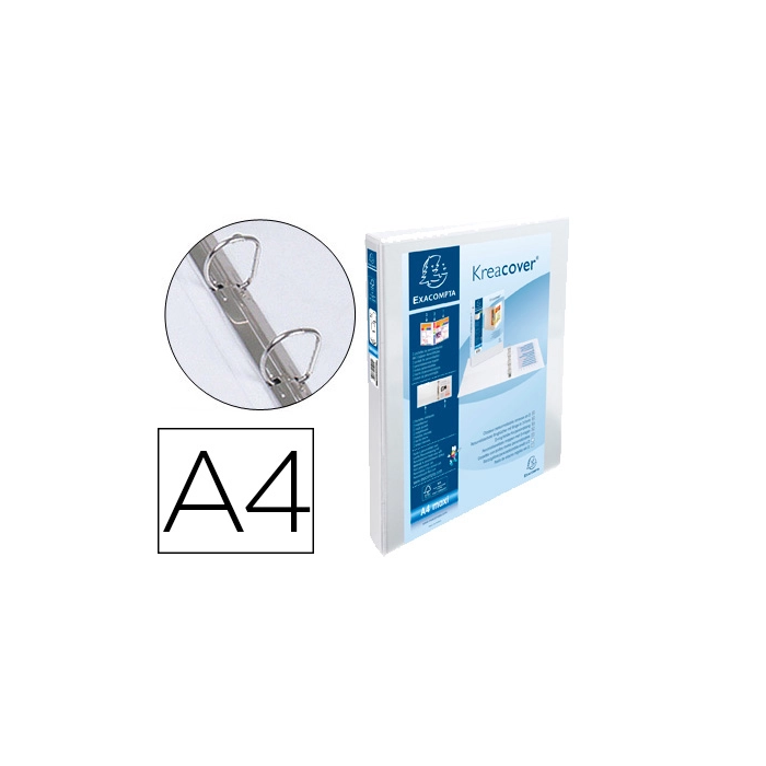 Exacompta Carpeta Canguro 2 Anillas 16 mm DIN A4+ Polipropileno Personalizable 3 Bolsillos Blanco