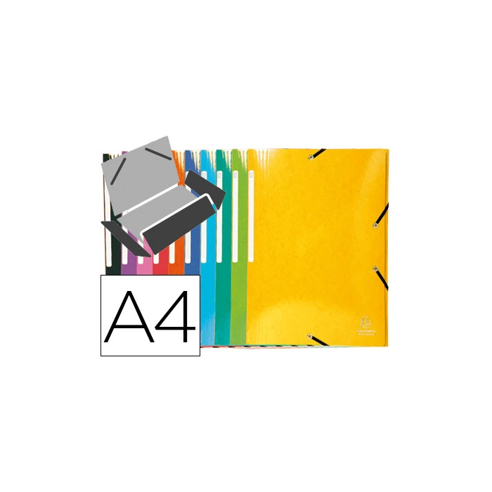 Exacompta Carpeta con Gomas, Simil-Prespán, Tres Solapas, DIN A4+, Colores Surtidos, Cierre Elástico, 10 Unidades