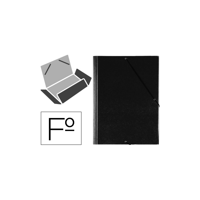Saro Carpeta Tres Solapas Gomas Plástico Folio Negro 255 x 335 mm