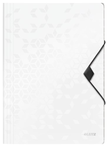 Carpeta de 3 solapas fabricada en polipropileno de alta calidad con superficie texturizada, solapas arrugadas, que permiten guardar hasta 150 hojas de 80 gramos, y original detalle tridimensional, que sujeta la goma de cierre. Medidas: 320 x 235 x 8 mm.
