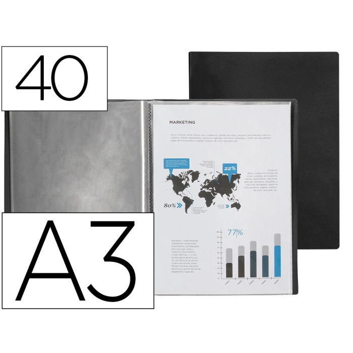 Liderpapel Carpeta Escaparate Polipropileno DIN A3 Negro Opaco con 40 Fundas