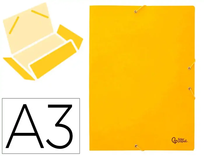 Carpeta de gomas en cartón símil prespán de 335 g/m². Cierre con gomas. Tres solapas. Tamaño folio.