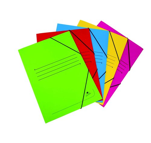 Carpeta con gomas y solapas, fabricadas en cartón estucado mate surtido de 500 gramos en tamaño folio (340 x 250mm).