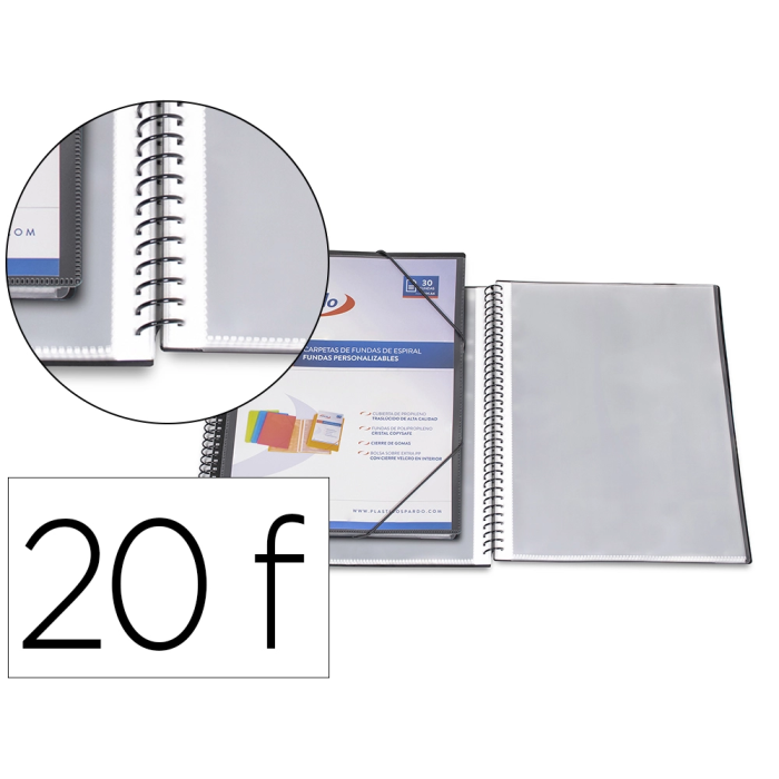 Carpeta Pardo Escaparate con Espiral 20 Fundas Folio Personalizable Color Negra