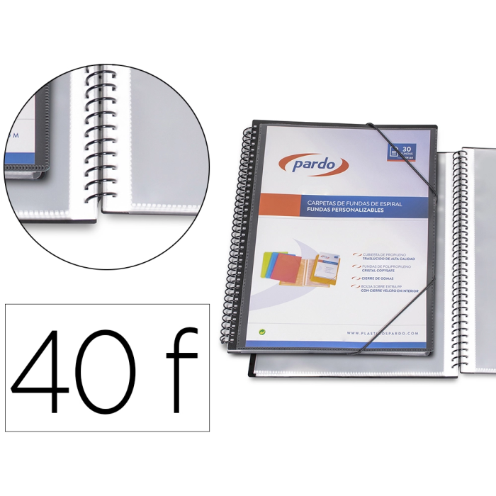Pardo Carpeta Escaparate con Espiral 40 Fundas Folio Personalizable Color Negro