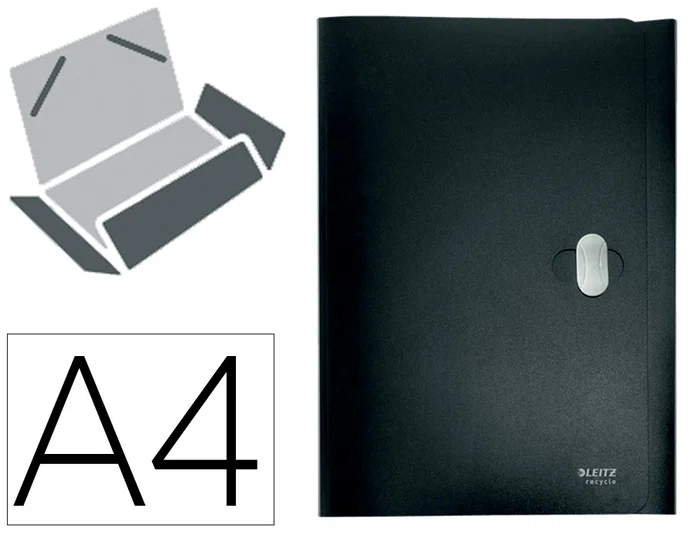 Leitz Carpeta Recycle con Gomas, Tres Solapas, DIN A4, Polipropileno Negro, 80% Reciclado