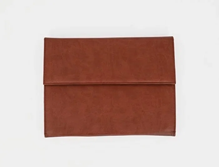 Carpeta para documentos confeccionada en piel sintética. Doble cierre de imán. Color marrón cuero. Formato DIN A4. Fabricada en Ubrique, España. Medidas: 260 x 235 x 35 mm.