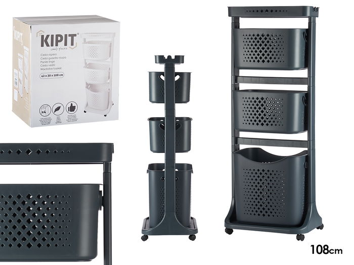 Kipit Ropero Plástico 3 Alturas con Ruedas Antracita 33x112x43 cm