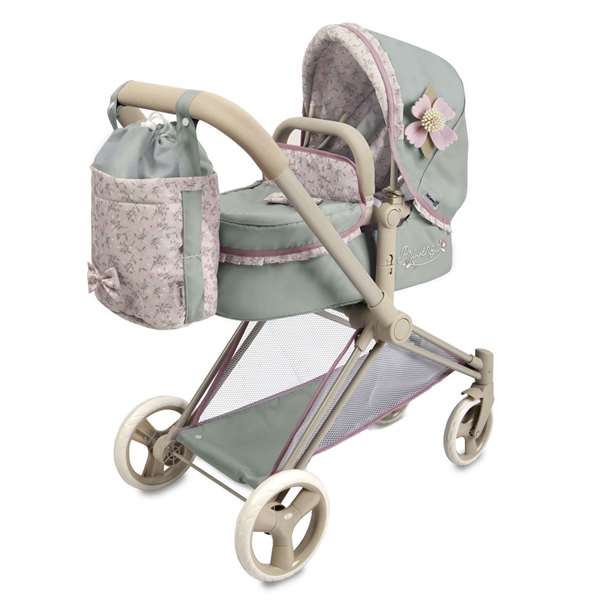 Coche de muñeca 3 x 1 plegable Provenza para muñecas de hasta 50 cm. 73x38x65 cm. Bolso convertible en canstilla.