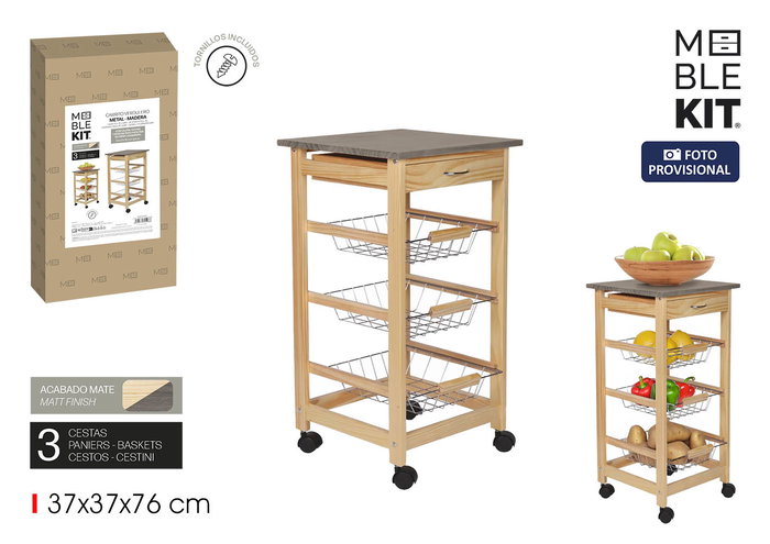 Carrito Verdulero 3 Niveles C/Cajon Moblekit