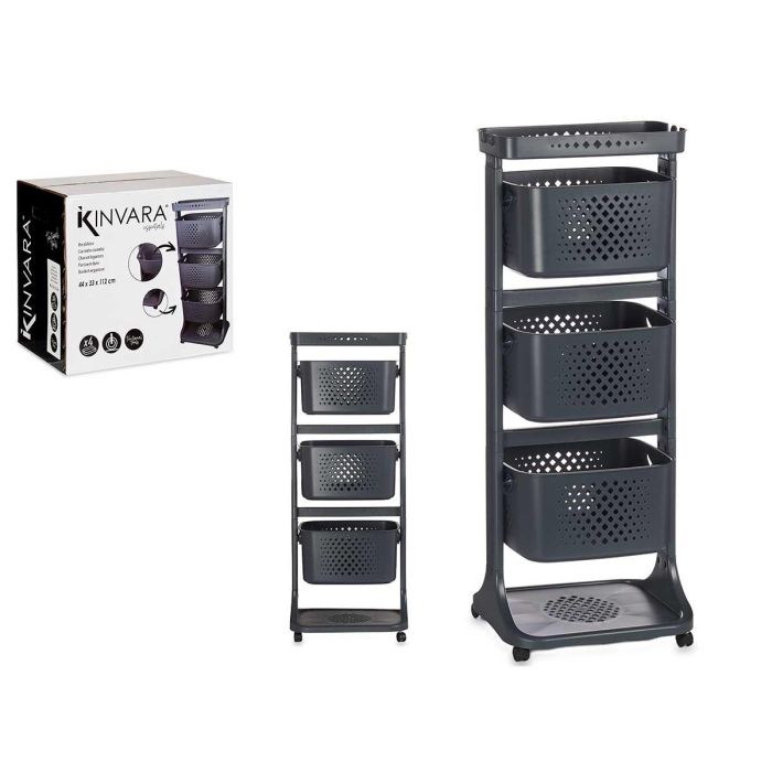 VERDULERO PLASTICO 3 ALTURAS RUEDAS ANTRACITA
