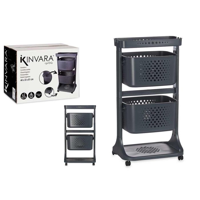 VERDULERO PLASTICO 2 ALTURAS RUEDAS ANTRACITA