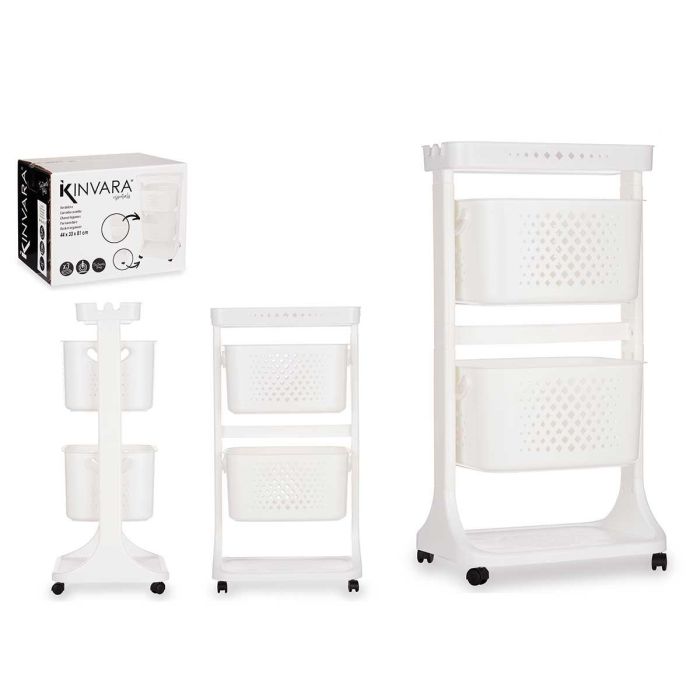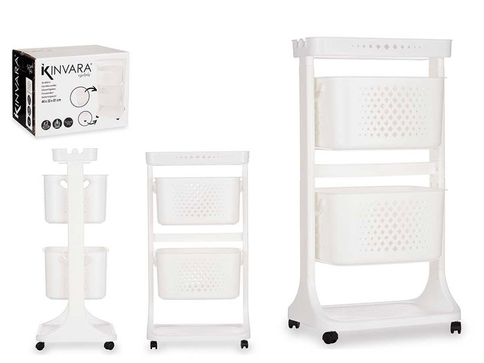 VERDULERO PLASTICO 2 ALTURAS RUEDAS BLANCO