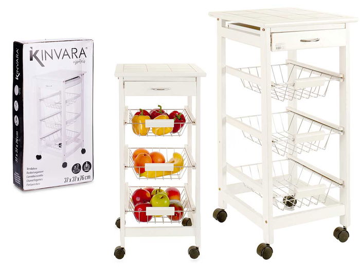 Kinvara Verdulero Madera Metal 3 Pisos Blanco 37x76x37 cm