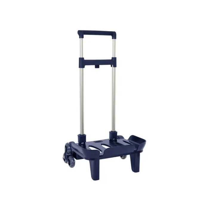 El carro portamochilas plegable de la marca Safta es un accesorio ideal para uso escolar diseñado para facilitar el transporte de mochilas y libros. Presenta un diseño deportivo en color azul marino, lo que le confiere un aspecto moderno y atractivo para niños a partir de 3 años de edad. Fabricado en polipropileno, un material resistente y ligero, este carrito garantiza durabilidad y facilidad de manejo, soportando el uso diario en entornos escolares. Cuenta con una estructura compacta y plegable que permite almacenarlo cuando no está en uso, optimizando el espacio. Sus dimensiones de 32x88x23,5 cm ofrecen un equilibrio entre capacidad y portabilidad, ajustándose a la medida estándar de mochilas infantiles y material escolar. El sistema de ruedas es especialmente destacado por incorporar un innovador mecanismo de triple rueda, que aporta una mayor estabilidad y facilita el desplazamiento en distintas superficies, incluyendo escaleras o terrenos irregularmente nivelados, característica muy apreciada en carros escolares para mejorar la comodidad y evitar esfuerzos excesivos al niño. Este carro portamochilas de Safta, además de funcional, se caracteriza por su sencillez, robustez y practicidad, lo que lo convierte en un complemento eficiente para la rutina diaria del alumnado. En conjunto, es una solución práctica y duradera para el traslado cómodo y seguro de las pertenencias escolares.