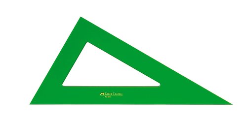 Cartabón técnico sin graduar para uso escolar y profesional, fabricado en plástico de metacrilato verde transparente.