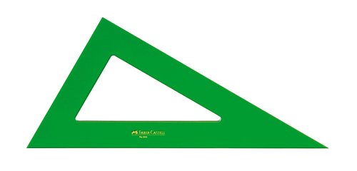 Cartabón técnico sin graduar para uso escolar y profesional, fabricado en plástico de metacrilato verde transparente.