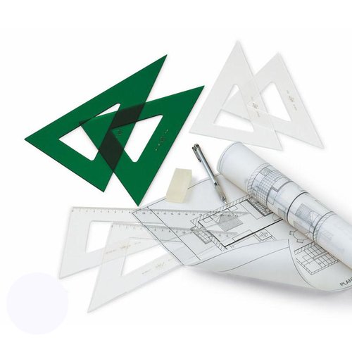 Cartabón cristal de 60º graduada por termoimpresión y sin rebarbo, fabricado en metacrilato de metilo de 2 mm de espesor, mecanizado y rectificado. Ideal para dibujo técnico.