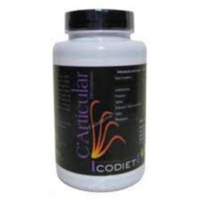 Composicion: Condroitin sulfato marino 300 mg, Glucosamina sulfato 100 mg, Metilsulfonil metano (MSM) 100 mg, Vitamina C (ácido ascórbico) 50 mg, Rutina 50 mg, Bromelaina 45 mg, Harpagofito 15 mg, Uncaria tomentosa 15 mg, Boswelia Serrata 15 mg, Bambú tabashir 15 mg, Tripsina 5 mg, Cobre (procedente degluconato) 0,33 mg, Magnesio (procedente de gluconato) 1 mg, Calcio (procedente de gluconato) 2 mg, Manganeso (procedente de gluconato) 1 mg y excipientes: agente de carga (celulosa microcristalina), antiaglomerantes (magnesio estearato y dióxido de silicio).