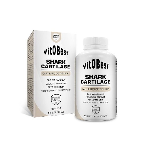 cartílago de tiburón (17 % sulfato de condroitina) (pescado), agente de carga: celulosa microcristalina, espesante (cápsula): gelatina y antiaglomerante: estearato de magnesio.