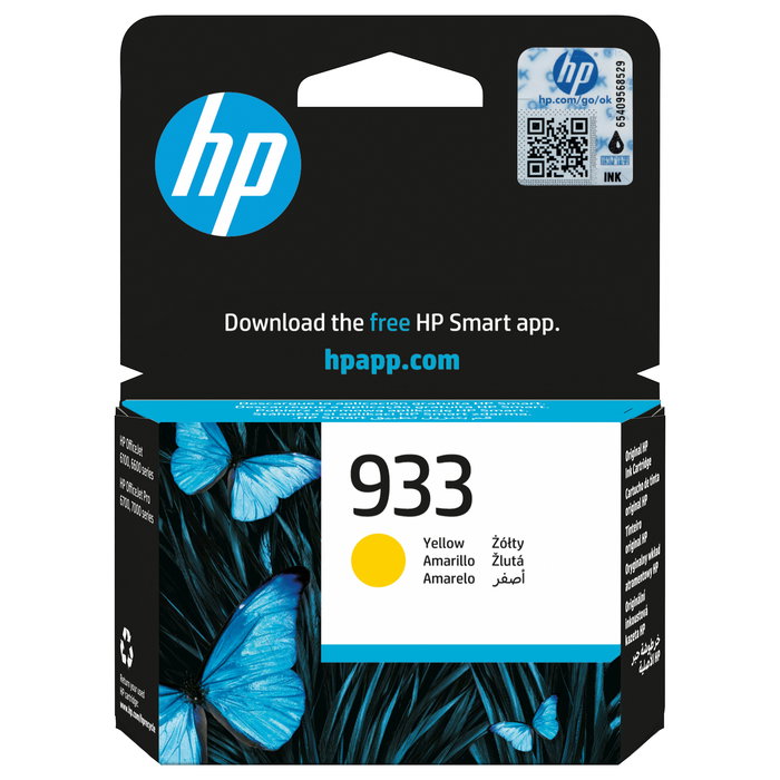 HP Cartucho de tinta Original 933 amarillo, Rendimiento estándar, Amarillo, Tinta a base de pigmentos, 3,5 ml, 1 pieza(s), Pack individual