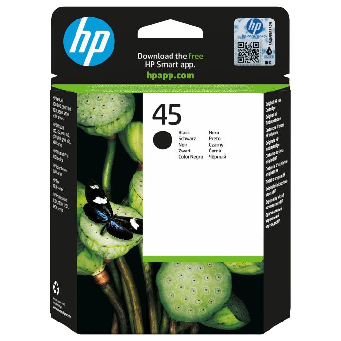 HP Cartucho de tinta original 45 grande negro, Alto rendimiento (XL), Negro, Tinta a base de colorante, Tinta a base de pigmentos, 1 pieza(s), 930 páginas
