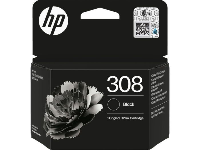 HP 308 BLACK ORIGINAL INK CARTRIDGE. DESIGNED WITH AT LEAST 65% RECYCLED PLASTIC CONTENT