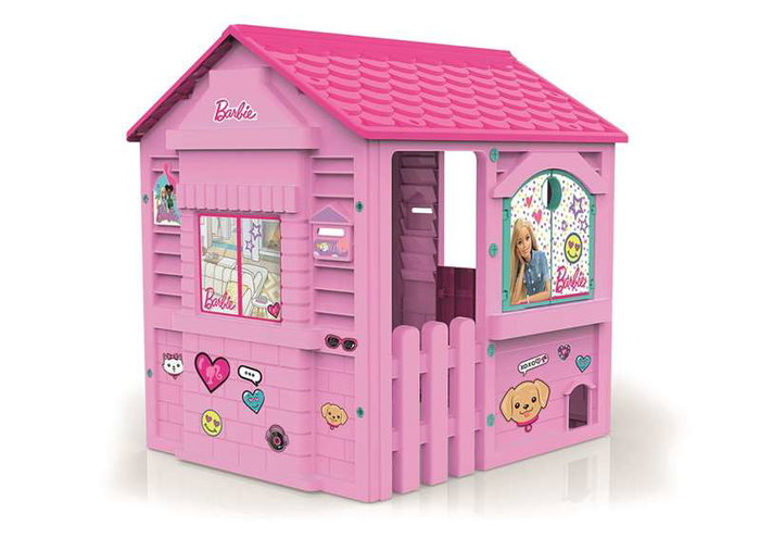 Casa Barbie vacaciones felices con adhesivas para decorar y hueco para mascotas 84x103x104 cm