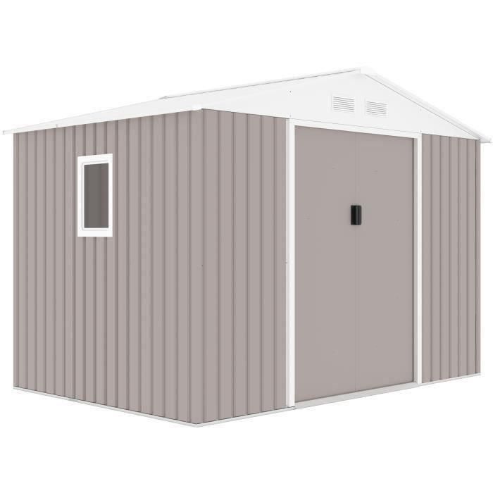 Caseta de jardín de acero 5,29 m² - Kit de anclaje incluido - Taupe