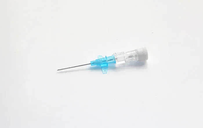 Catéter I.V. recto sin puerto con alas, referencia G22 y 25 mm de longitud, en color azul. Fabricado por Covetrus. Presenta un afilado nivelado con punta cónica atraumática para mayor comodidad y seguridad. El catéter está construido con FEP de pared delgada e incorpora 3 líneas de contraste de rayos X para facilitar la visualización. Cuenta con una cámara de retorno transparente que permite ver fácilmente la sangre que retorna. Dispone de un tapón Luer lock para el cierre seguro del extremo proximal. Es un producto estéril, libre de látex y pirógenos, y está diseñado para un solo uso.