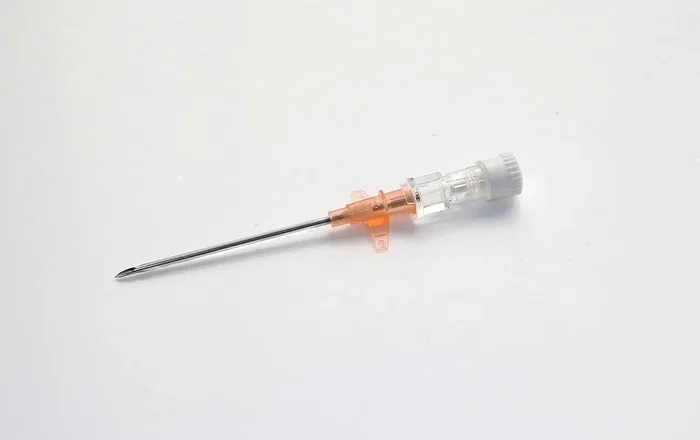 Catéter I.V. recto sin puerto con alas - G14 - 45 mm - color naranja de la marca Covetrus. Equipado con una punta cónica atraumática con afilado nivelado para una inserción segura. El catéter está fabricado con material FEP de pared delgada, presenta 3 líneas de contraste de rayos X para facilitar el posicionamiento y una cámara de retorno transparente que permite visualizar fácilmente el retorno de sangre. Incluye un tapón Luer lock para asegurar el cierre del extremo proximal. Producto estéril, de un solo uso, libre de látex y pirógenos.