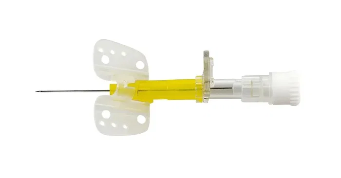 Catéter Vasofix Safety Alas 0,7 x 19 mm, color amarillo, de 24 G. Paquete de 50 unidades. Fabricado por B. Braun.