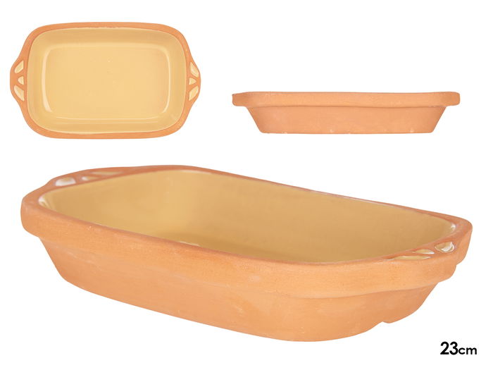 CAZUELA BARRO RECTANGULAR ASAS 23CM AMARILLO