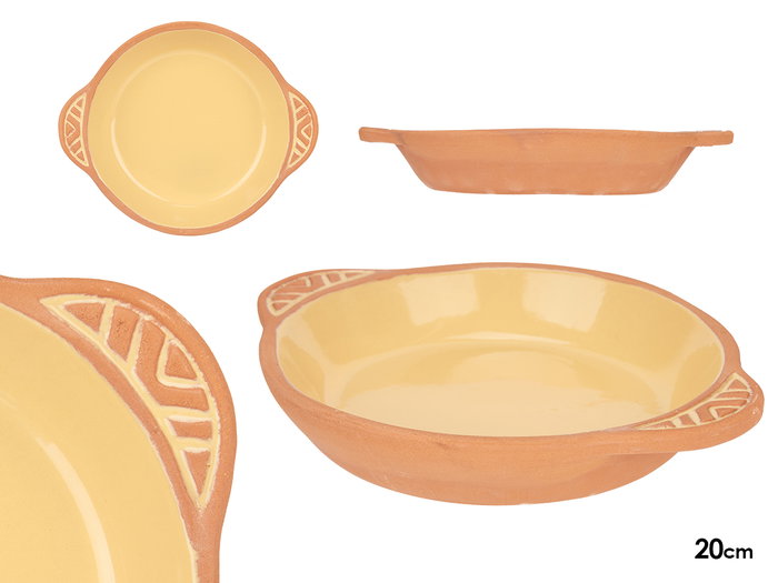 CAZUELA BARRO REDONDA ASAS 20CM AMARILLO